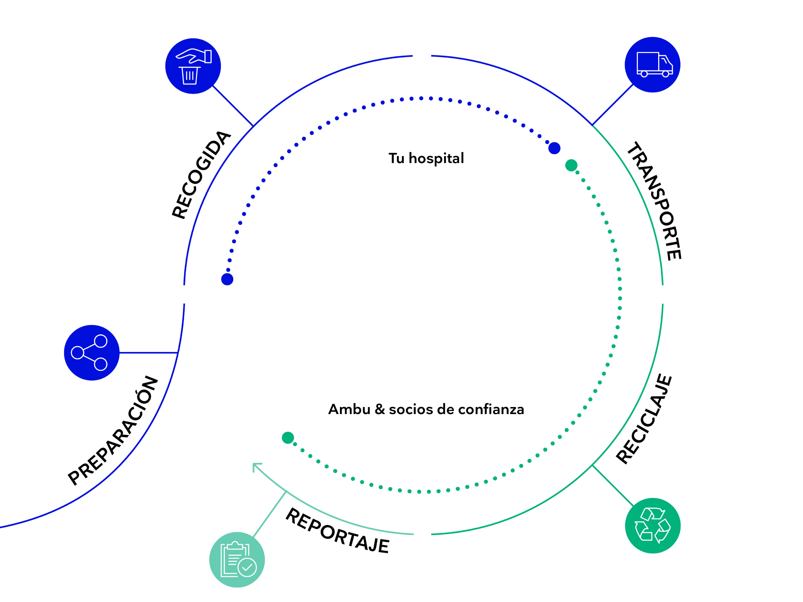 Ambu te apoya durante todo el proceso, desde la incorporación y la formación hasta la recogida, el reciclaje y la presentación de informes.